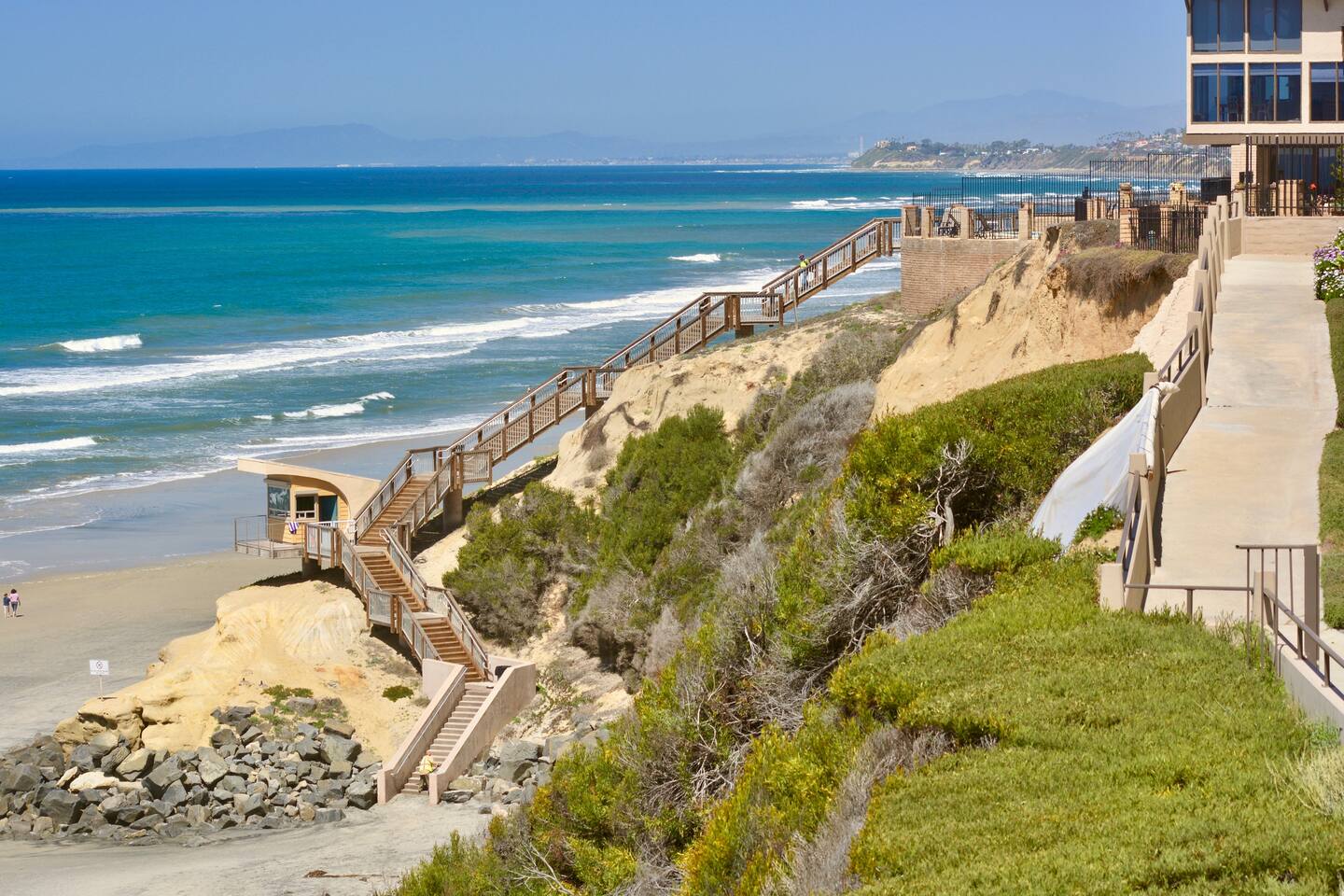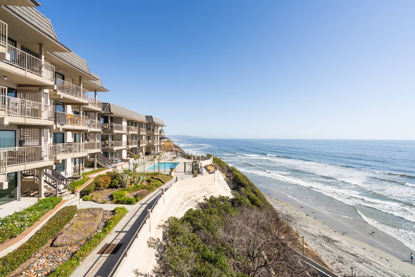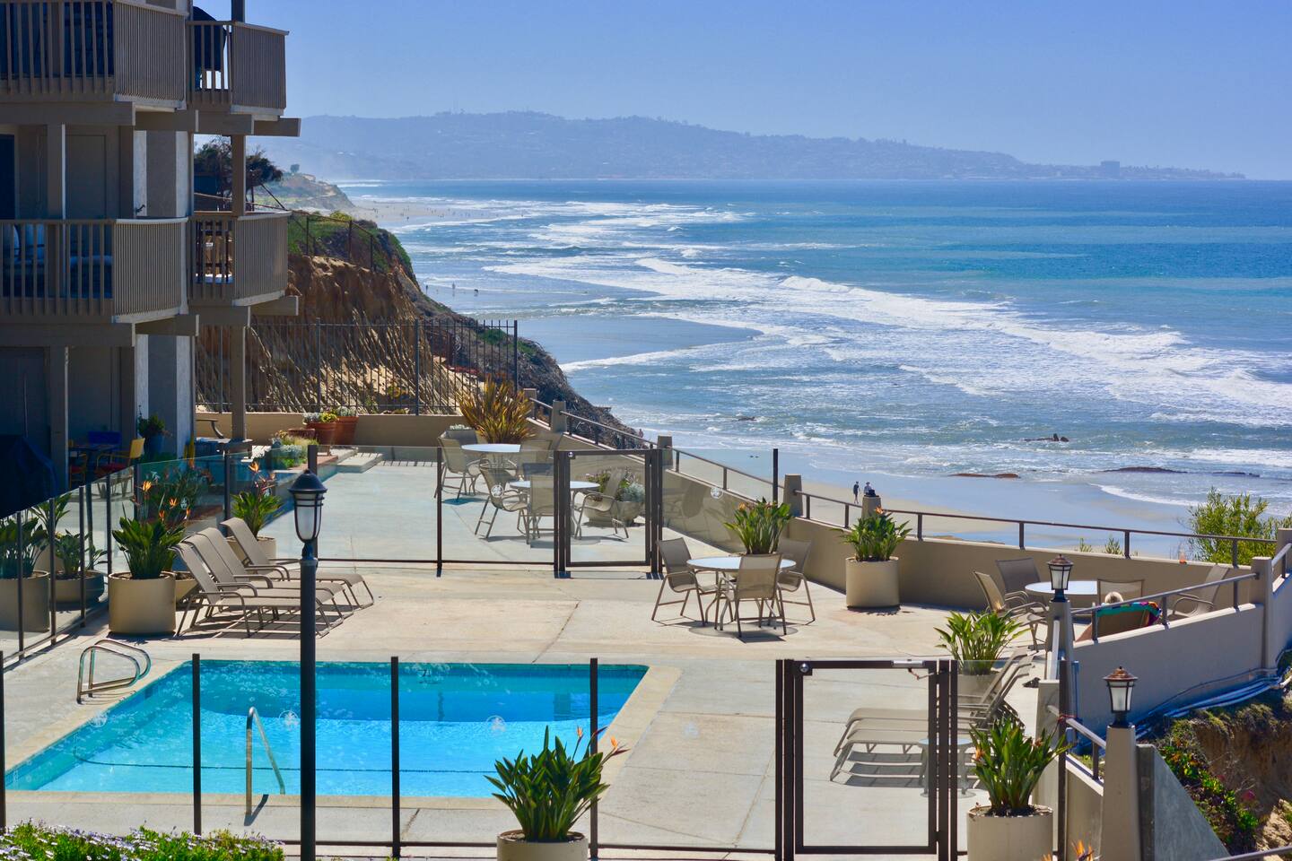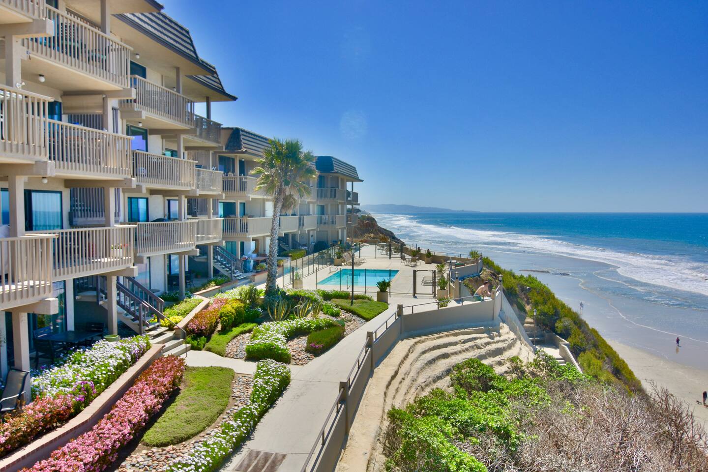 The Del Mar Beach Club is perched atop a bluff in Solana Beach, a charming, stylish and walkable beach town north of San Diego. The complex has stairs that leads directly to a vibrant, sandy beach. Cedros Avenue’s restaurants, shops, and art galleries are a short walk away.