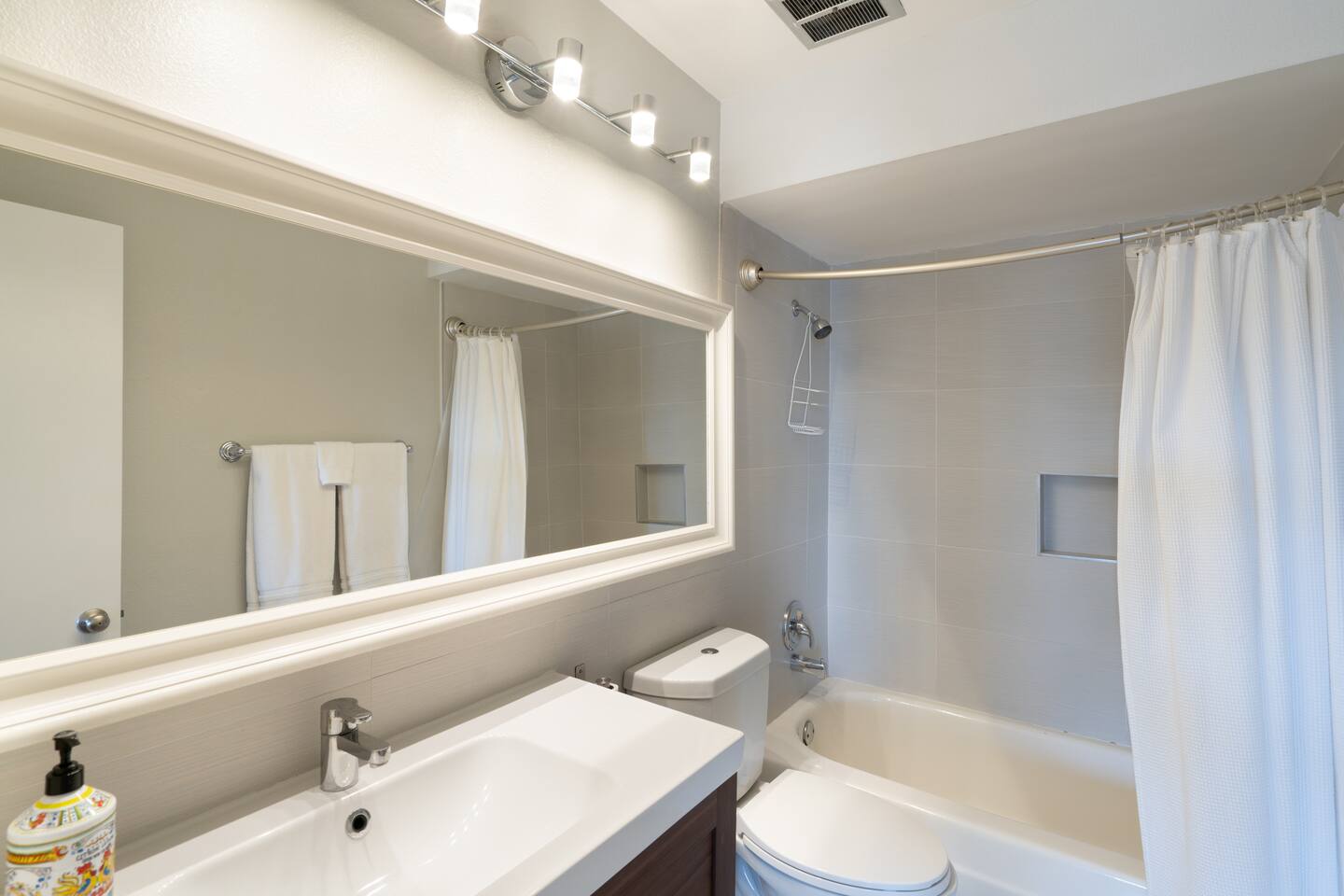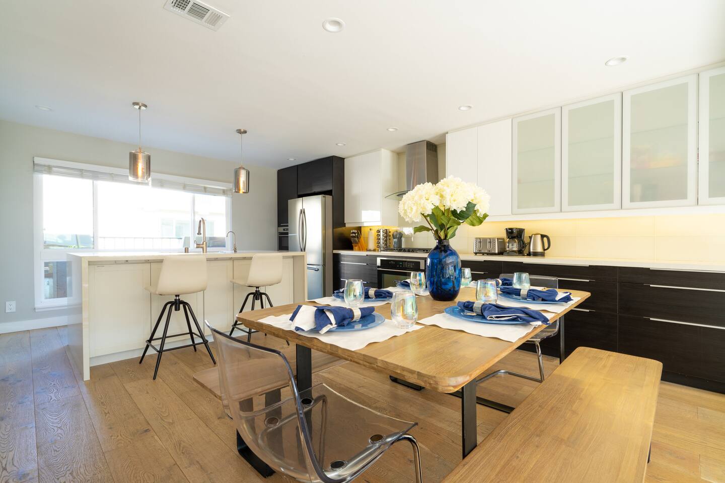 Hosted by Pacific Beach Luxury. Our Luxury Beach Townhome has just been TOTALLY remodeled with a gorgeous new kitchen with all new appliances/cookware, modern new furniture, beautiful new bathrooms and central A/C. We have a large flat screen TV in the living room with streaming and free WiFi as well as a TV in the master bedroom. Our kitchen comes fully stocked with all the utensils, pots/pans, and dinnerware you'll need to make any home-cooked meal. Three spacious bedrooms and 2.5 bathrooms can accommodate 7 people plus an infant comfortably. Bedrooms feature king-size bed and crib in the master suite, queen bed in the second bedroom, and two twin beds (plus a twin trundle) in the third bedroom! There is a desk and ergonomic chair set up in the queen bedroom. Our rental comes with a full size crib for the little one to sleep, a high-chair, stroller, bed time stories, and beach toys. Our home is perfect for any sized family looking for a great beach getaway! Park in front of the townhome in the two car carport. We provide all the beach gear your family will need! We have boogie-boards, beach chairs, beach towels, and umbrella. We provide all the linens for you to use while you vacation with us, including extra pillows, blankets, sheets, towels. We also have full size washer and dryer in the unit, and we provide laundry detergent. We are experienced owners who take great pride in managing our six vacation rentals in Pacific Beach and now one rental in Solana Beach. Read our reviews to get a sense of our commitment to providing our guests with a top notch luxury vacation experience. Primary renter must be 25 or older. This is not a party house! We strongly encourage our guests to purchase trip insurance.